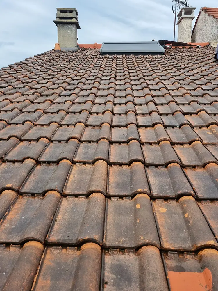 Avant la pose de la peinture, nous avons effectué un nettoyage complet de la toiture afin de garantir une accroche optimale. Cette étape inclut :